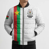 Grab your Personalized Burkina Faso Striped Bomber Puffer Jacket African Mud Cloth Pattern - White by Wonder Print Shop today and experience comfort, style, and versatility in one sleek jacket.