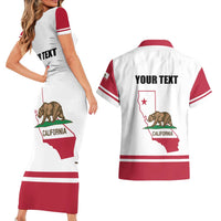 Personalized California Republic Couples Matching Short Sleeve Bodycon Dress and Hawaiian Shirt Red Star The Bear Flag