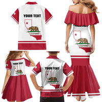 Personalized California Republic Family Matching Mermaid Dress and Hawaiian Shirt Red Star The Bear Flag