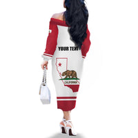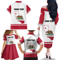 Personalized California Republic Family Matching Off The Shoulder Long Sleeve Dress and Hawaiian Shirt Red Star The Bear Flag