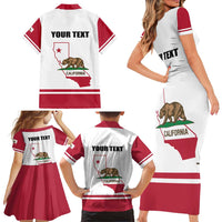 Personalized California Republic Family Matching Short Sleeve Bodycon Dress and Hawaiian Shirt Red Star The Bear Flag LT01