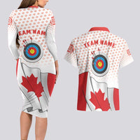 Personalized Canada Archery Couples Matching Long Sleeve Bodycon Dress and Hawaiian Shirt Maple Leaf Canadian Flag