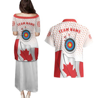 Personalized Canada Archery Couples Matching Puletasi and Hawaiian Shirt Maple Leaf Canadian Flag