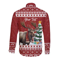 Personalized Canada Christmas Long Sleeve Button Shirt Merry Christmoose