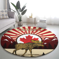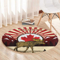 Canada Maple Leaf Round Carpet Moose And Forest Retro Style