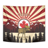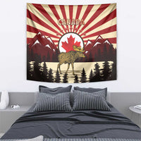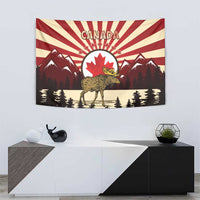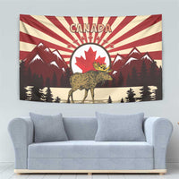 Canada Maple Leaf Tapestry Moose And Forest Retro Style