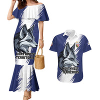 Personalized Canada Northwest Territories Couples Matching Mermaid Dress and Hawaiian Shirt White Fox Grunge Stylized