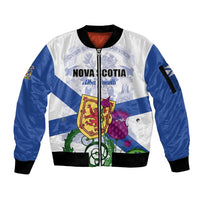 Personalized Canada Nova Scotia Province Sleeve Zip Bomber Jacket One Defends and The Other Conquers LT01
