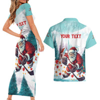 Personalized Canada Santa Playing Hockey Couples Matching Short Sleeve Bodycon Dress and Hawaiian Shirt