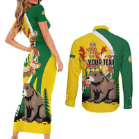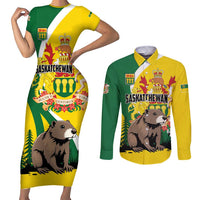 Personalized Canada Saskatchewan Province Couples Matching Short Sleeve Bodycon Dress and Long Sleeve Button Shirt Multis e Gentibus Vires LT01