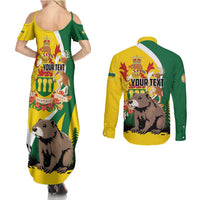 Personalized Canada Saskatchewan Province Couples Matching Summer Maxi Dress and Long Sleeve Button Shirt Multis e Gentibus Vires LT01