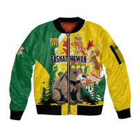 Personalized Canada Saskatchewan Province Sleeve Zip Bomber Jacket Multis e Gentibus Vires LT01