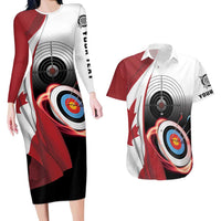 Personalized Canadian Flag Couples Matching Long Sleeve Bodycon Dress and Hawaiian Shirt Canada Archery Target - Maple Leaf