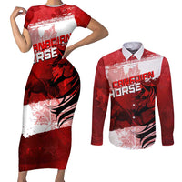 Personalized Canadian Horse Couples Matching Short Sleeve Bodycon Dress and Long Sleeve Button Shirt Canada Maple Leaf