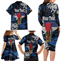 Personalized Central African Republic Elephant Family Matching Long Sleeve Bodycon Dress and Hawaiian Shirt King Protea - Abstract Style