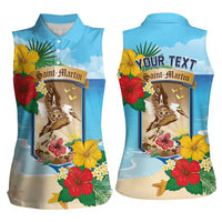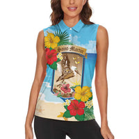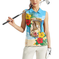 Personalized Collectivity of Saint Martin Women Sleeveless Polo Shirt Hibiscus Flowers Tropical Beach