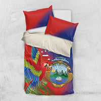 Personalized Costa Rica Independence Day Bedding Set Scarlet Macaw Parrot With Coat Of Arms