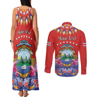 Personalized Costa Rica Independence Day Couples Matching Tank Maxi Dress and Long Sleeve Button Shirt Guaria Morada With Folk Pattern LT14
