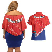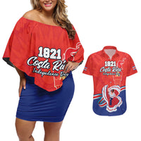 Personalized Costa Rica Independence Day Since 1821 Couples Matching Off Shoulder Short Dress and Hawaiian Shirt Folk Dancer with Folk Art Pattern