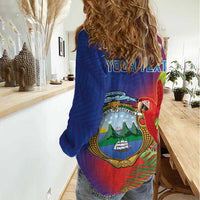 Personalized Costa Rica Independence Day Women Casual Shirt Scarlet Macaw Parrot With Coat Of Arms