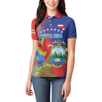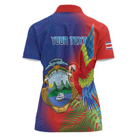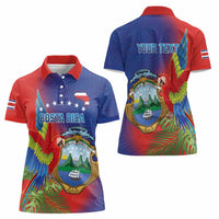 Personalized Costa Rica Independence Day Women Polo Shirt Scarlet Macaw Parrot With Coat Of Arms