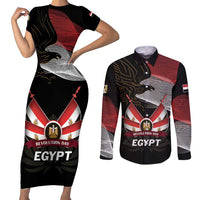 Personalized Egypt Revolution Day Couples Matching Short Sleeve Bodycon Dress and Long Sleeve Button Shirt Steppe Eagle Lotus Flower LT01