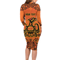 Personalized Every Child Matter Long Sleeve Bodycon Dress Canadian Native Indigenous Haida