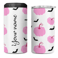Personalized Halloween Iced Coffee 4 in 1 Can Cooler Tumbler Custom Name Pink Pumpkin Cup TB10