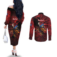 Personalized Kosova Albanian Roots Couples Matching Off The Shoulder Long Sleeve Dress and Long Sleeve Button Shirt Kosova Albanian Eagle Flag LT9