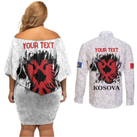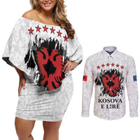 Personalized Kosova E Lire Couples Matching Off Shoulder Short Dress and Long Sleeve Button Shirt Kosova Albanian Flag