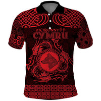 Personalized Merionethshire Meirionnydd Polo Shirt Red Wolf Celtic-inspired