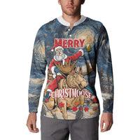 Personalized Merry Christmoose Button Sweatshirt Santa Claus Riding Moose Starry Night LT01