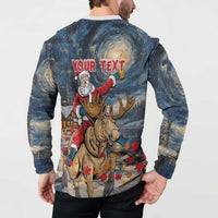 Personalized Merry Christmoose Button Sweatshirt Santa Claus Riding Moose Starry Night