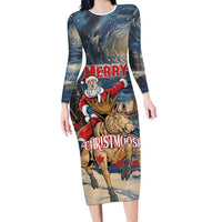 Personalized Merry Christmoose Family Matching Long Sleeve Bodycon Dress and Hawaiian Shirt Santa Claus Riding Moose Starry Night