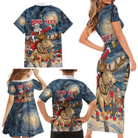 Personalized Merry Christmoose Family Matching Short Sleeve Bodycon Dress and Hawaiian Shirt Santa Claus Riding Moose Starry Night