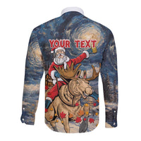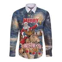 Personalized Merry Christmoose Long Sleeve Button Shirt Santa Claus Riding Moose Starry Night