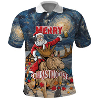 Personalized Merry Christmoose Polo Shirt Santa Claus Riding Moose Starry Night