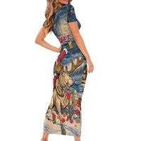 Personalized Merry Christmoose Short Sleeve Bodycon Dress Santa Claus Riding Moose Starry Night