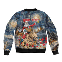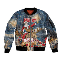 Personalized Merry Christmoose Sleeve Zip Bomber Jacket Santa Claus Riding Moose Starry Night