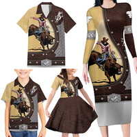 Bull Riding Family Matching Long Sleeve Bodycon Dress and Hawaiian Shirt Cowboy Courage Rodeo