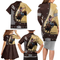 Bull Riding Family Matching Long Sleeve Bodycon Dress and Hawaiian Shirt Cowboy Courage Rodeo DT03
