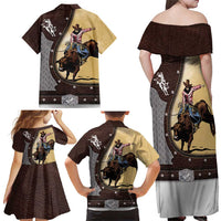 Bull Riding Family Matching Off Shoulder Maxi Dress and Hawaiian Shirt Cowboy Courage Rodeo