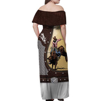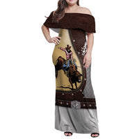 Bull Riding Family Matching Off Shoulder Maxi Dress and Hawaiian Shirt Cowboy Courage Rodeo DT03