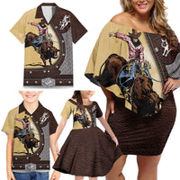 Bull Riding Family Matching Off Shoulder Short Dress and Hawaiian Shirt Cowboy Courage Rodeo DT03