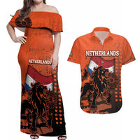 Personalized Netherlands Couples Matching Off Shoulder Maxi Dress and Hawaiian Shirt Lion With Daisy Flower