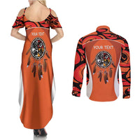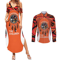 Personalized Orange Day Canada Couples Matching Summer Maxi Dress and Long Sleeve Button Shirt Honouring The Children Haida Pattern