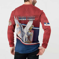 Personalized Serbia Button Sweatshirt White Double Headed Eagle With Coat Of Arms