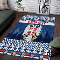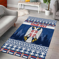 Personalized Serbia Christmas Area Rug Coat Of Arms - Blue Version