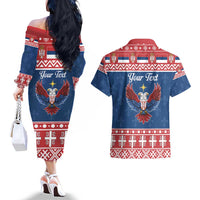 Personalized Serbia Christmas Eagle Couples Matching Off The Shoulder Long Sleeve Dress and Hawaiian Shirt Srecan Bozic Tee