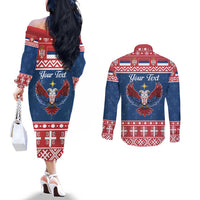 Personalized Serbia Christmas Eagle Couples Matching Off The Shoulder Long Sleeve Dress and Long Sleeve Button Shirt Srecan Bozic Tee